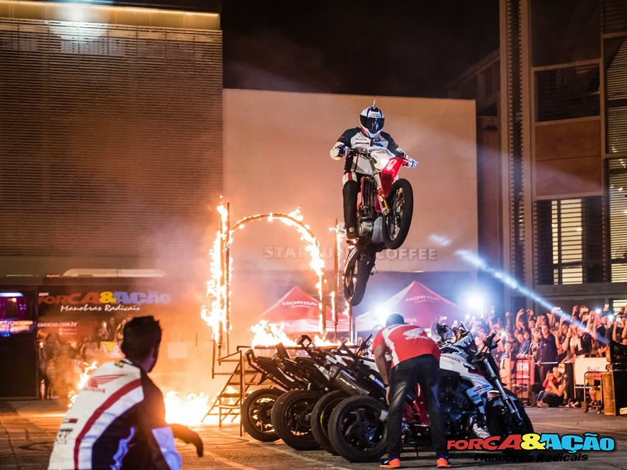 Em 1983, Fábio Rolim, o popular “Dentinho”, campeão Brasileiro Bicicross adquiriu uma motocicleta e resolveu testar no veículo as manobras que fazia na sua Bike. Anos depois, dessa brincadeira, em março de 1990 surgiu a maior equipe Brasileira de manobras radicais sobre motos, a equipe Força & Ação, que é a única equipe de Motoshow Acrobático no Brasil homologada pela Confederação Brasileira de Motociclismo (CBM) e patrocinada pela Honda do Brasil e pelo Consórcio Honda.