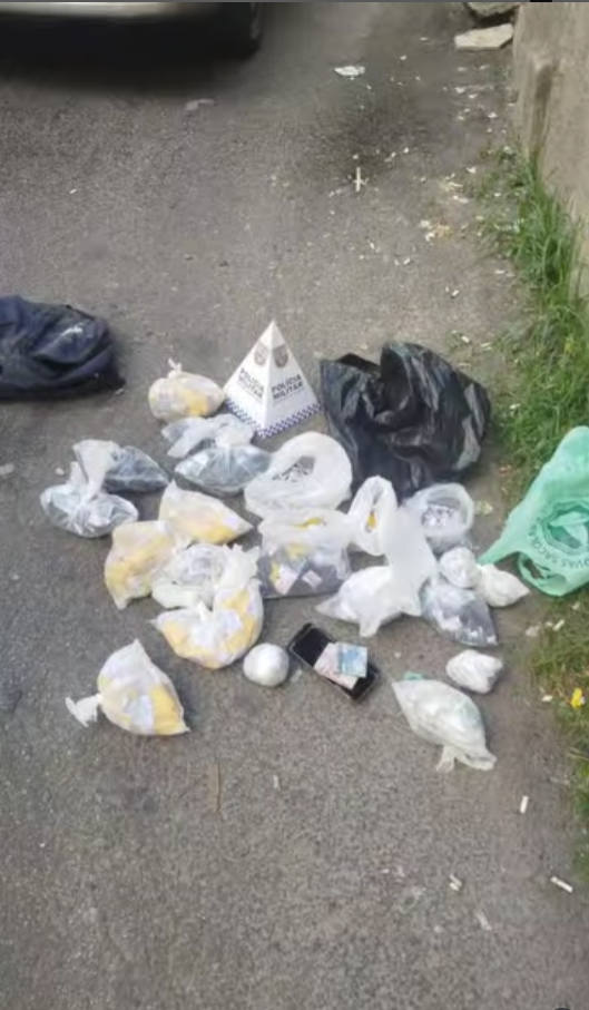 Durante a ação, foram apreendidos 866 pedras de crack, 760 pinos de cocaína, 74 trouxinhas de maconha, dois aparelhos celulares, R$ 43,00 em espécie e uma placa de veículo.