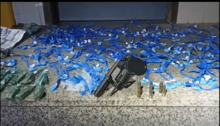 Durante a revista ao automóvel, um Volkswagen Gol, os agentes encontraram um revólver calibre .38, seis munições, além de um aparelho celular. Com o auxílio do cão farejador, foram localizados ainda 316 sacolés de cocaína e 17 tabletes de maconha, totalizando um considerável volume de entorpecentes retirado das ruas.